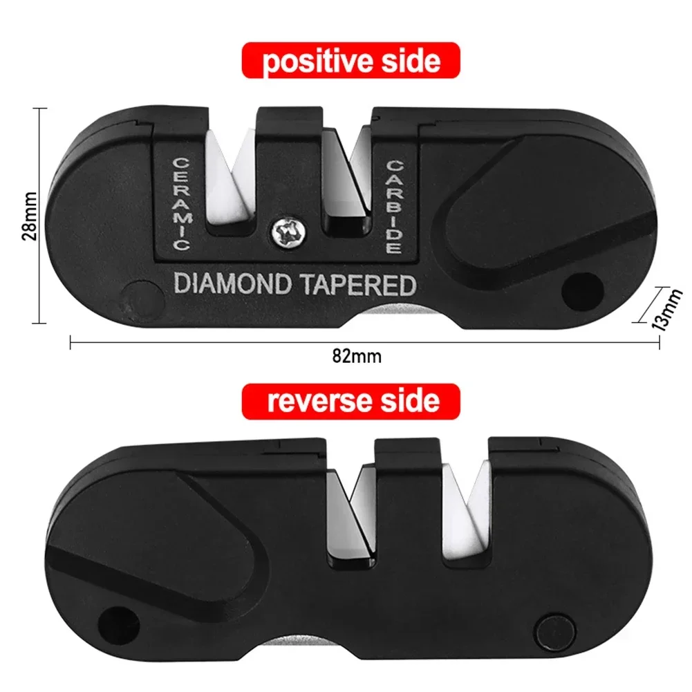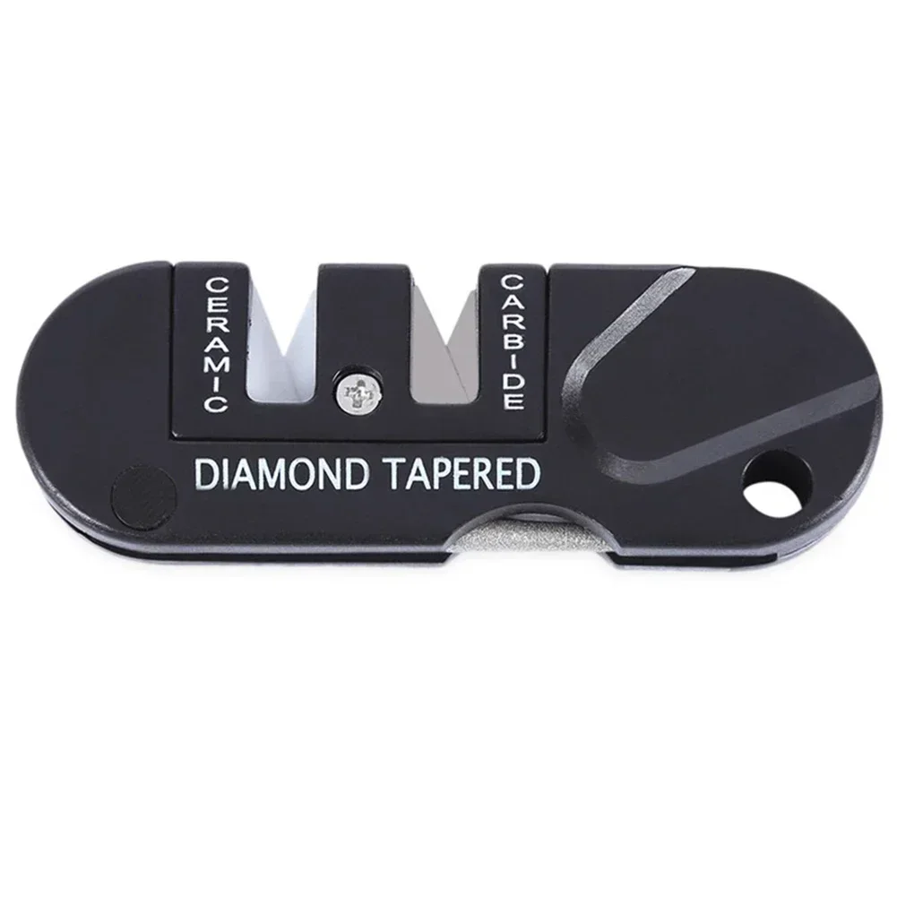 This portable knife sharpener uses tungsten, ceramic, and carbide materials to restore blades with professional precision. It offers multiple sharpening stages to repair, refine, and polish your tools. The compact design makes it easy to carry for camping, hiking, and outdoor survival. Its durable construction ensures long-term use in tough environments. The ergonomic grip provides stability for safe and simple sharpening. This kit works on kitchen knives, pocket knives, and tactical blades. The ceramic and carbide slots help achieve a razor-sharp edge quickly. It is perfect for chefs, outdoorsmen, and emergency-preparedness users. The lightweight build fits easily into backpacks or gear bags. With reliable sharpening performance, this tool keeps all your blades ready for any task.